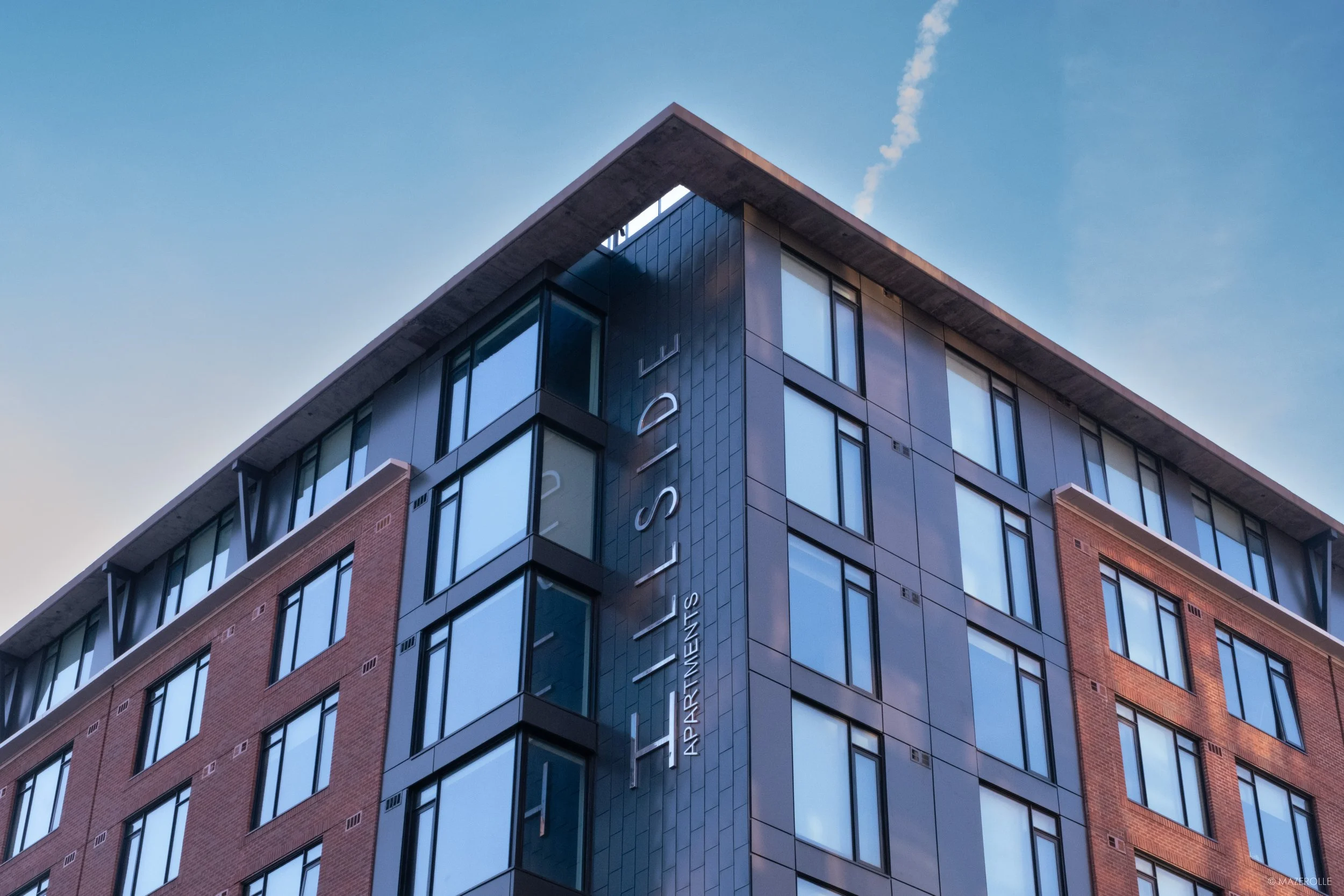 Located on the corner of Besserer Ave and King Edward in downtown Ottawa, this newly built residential building features 3mm aluminum plate panel, custom ‘fishscale’ steel siding panels, fibre cement panels, corrugated steel siding, mineral wool insulation and adjustable steel girts, and continuous bituminous sheet air vapour barrier membrane.